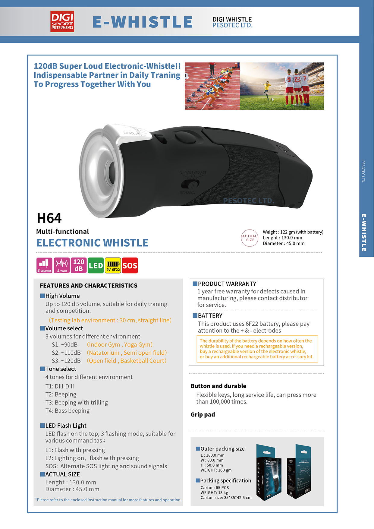 Up to 120 dB volume, suitable
